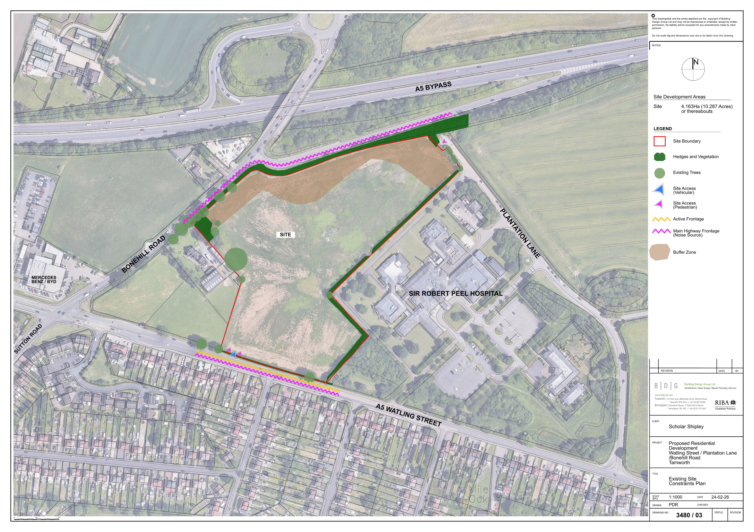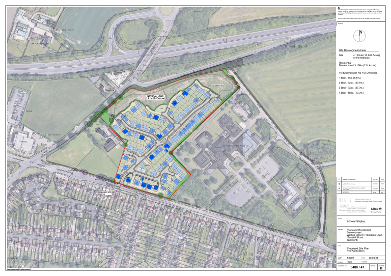 An outline planning application is proposed to be submitted to Lichfield District Council as the local planning authority, in April 2026 involving approximately 4.3 hectares of land adjacent to Watling Street and west of Sir Robert Peel Hospital at Mile Oak, Fazeley (see Map 1). The proposals are currently subject to pre-application discussions with the local planning authority and Staffordshire County Council as the highway authority. The Applicants, Ms Charlotte Schollar, Messrs. H. and W. Shipley, are local to the area and have assembled an extensive project team which using the best available evidence, to design the most appropriate development on the site taking into account its size, condition and relationship to surrounding land uses.
