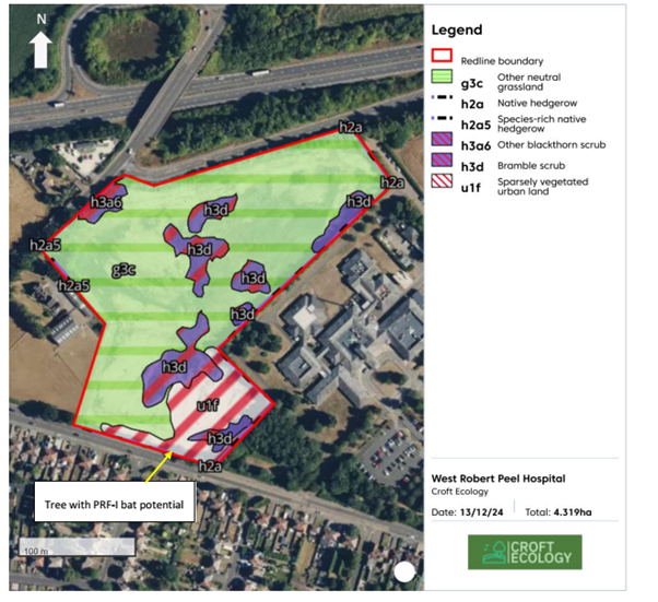 Croft Ecology has undertaken an ecological assessment of the Site. This walkover survey mapped the existing habitats on the Site (see Map 7), including a botanical survey and assessment for protected species which may use the site, such as bats, badgers and animals which may use the Site for foraging and commuting.