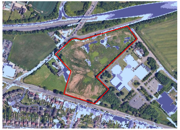 The Site is located in Flood Zone 1, the lowest risk zone, on the Environment Agency’s Flood Map for Planning. The Environment Agency’s surface water flood risk map (Map 9 – which includes the effects of future climate change) reveals a few localised areas to the north of the Site where rainwater may collect. A significant part of the north part of the Site will be set aside for greenspace. Where development is proposed, the isolated low spots will be lost as the Site is regraded for the development. The future development will also include a SuDS drainage scheme in line with current good practice.
